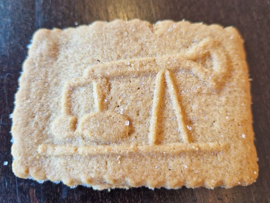 Wij schoven aan in Schoonebeek met uitzicht op de monumentale Jaknikker die op het dorpsplein nog knikt zonder te pompen. En we kregen een bijzonder koekje bij de koffie.