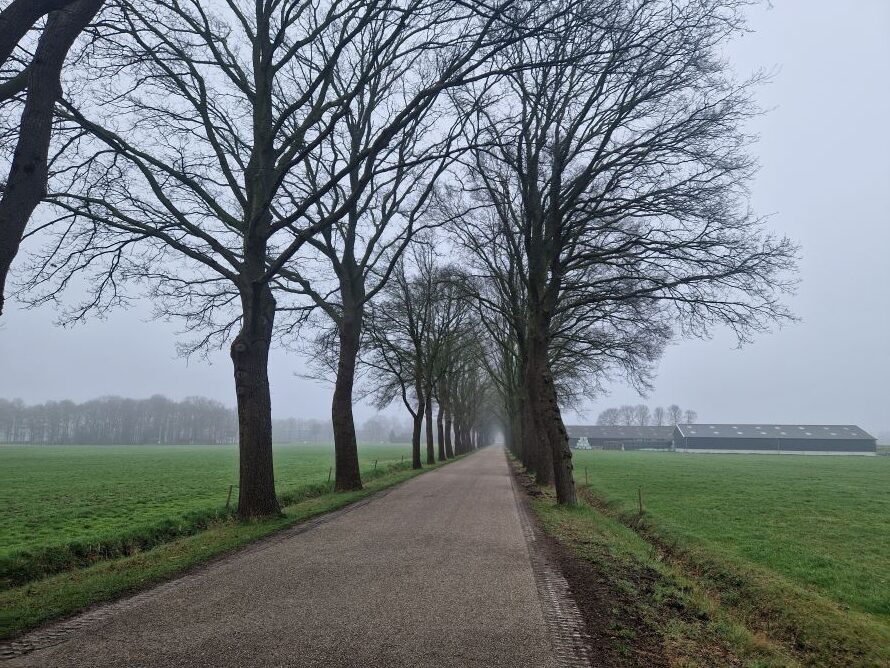 Een dag met de trein naar Emmen om met de wind in de rug lekker terug te rijden. Voor de zaterdag was ochtendmist voorspeld, maar die loste minder snel op dan ‘beloofd’. Dus alleen een rondje gereden naar Hardenberg, voor S. een Volkskrant gekocht en in het hotel samen gepannenkoekt. En die middag nog even gevlamd om een knooppuntengebied te sluiten.