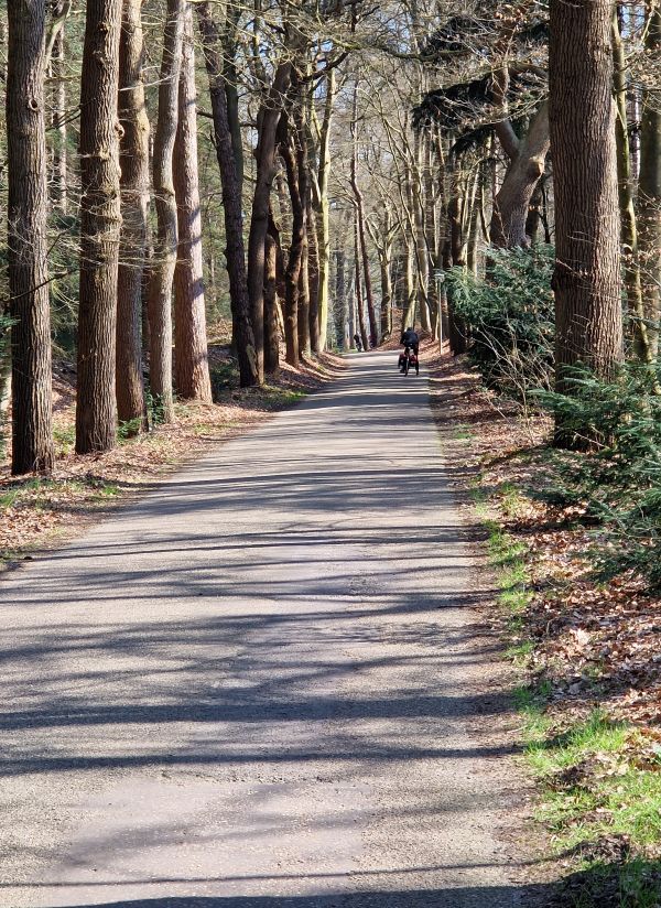 Naar Almelo met de trein en van daaruit richting hotel. Langs een thuis uitgestippelde knooppuntenroute. Dan kan ik meestal niet zien wat voor soort wegen de route volgt. In dit geval zaten er ‘zanderige’ gedeelten in. Vind ik leuk, want technisch, Sophie denkt daar anders over. Die route verlaten om met behulp van Google Maps een kortere route te zoeken. Maar veel korter werd het niet omdat ik de aanwijzingen niet altijd goed begreep.